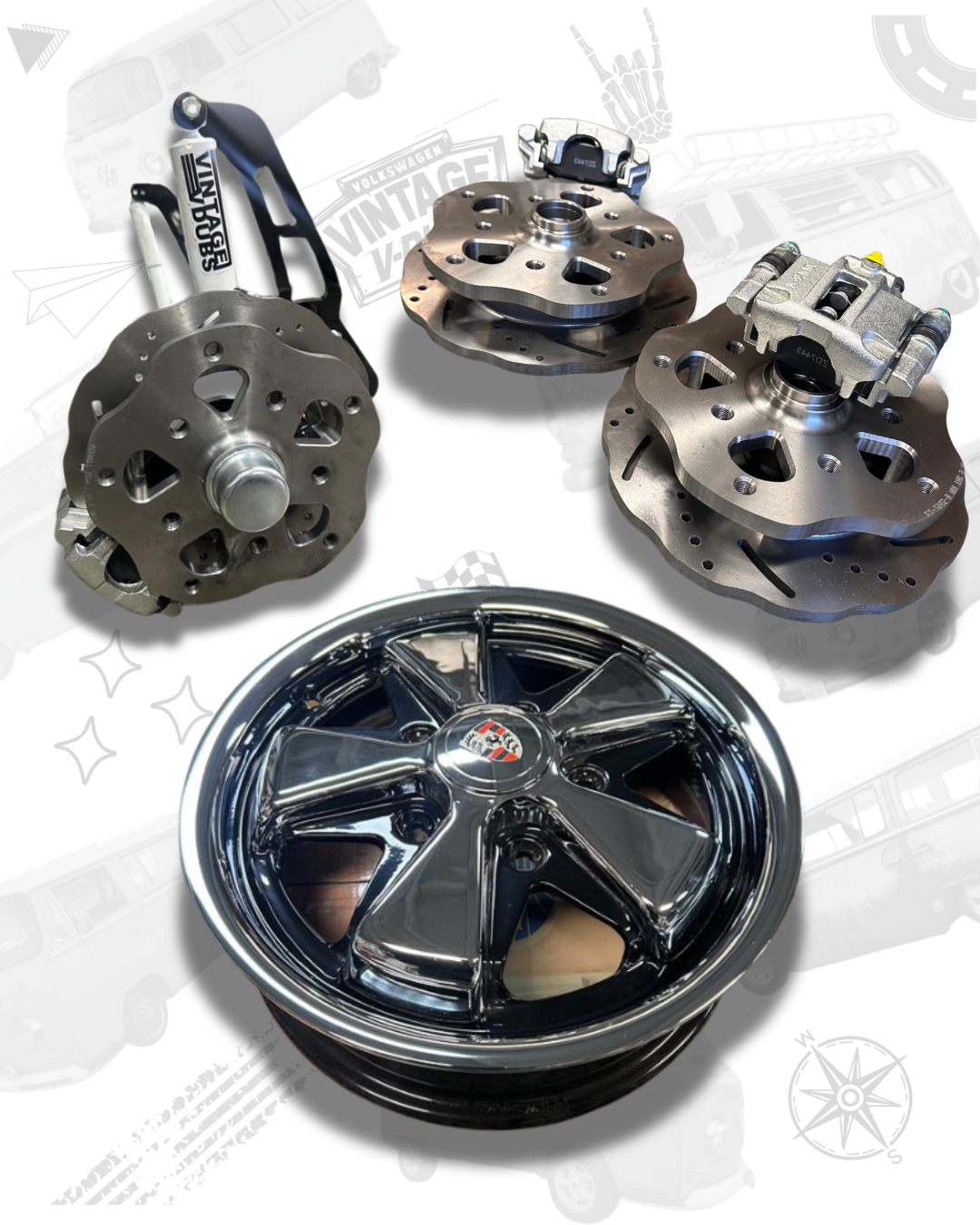 B.B.B T-1 Best Beetle Brakes with Spindles and Detailed Porsche Alloys (Set of 4)